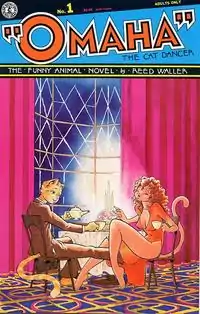 "Omaha" the Cat Dancer is an erotic comic strip and later comic book created by artist Reed Waller and writer Kate Worley. Set in fictional Mipple City, Minnesota (derived from "MPLS," the old postal abbreviation for Minneapolis) in a universe populated by anthropomorphic funny animal characters, the strip is a soap opera focusing on Omaha, a feline exotic dancer, and her lover, Chuck, the son of a business tycoon.[1]
