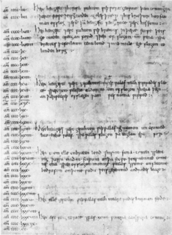 The Chronicle was put together about four hundred years after these events. It is known that the annalists used material from earlier chronicles, as well as from oral sources such as sagas, but there is no way to tell where these lines came from.[16] The terms 'British' and 'Welsh' were used interchangeably, as 'Welsh' is the Saxon word meaning 'foreigner', and was applied to all the native Romano-British of the era.[17]