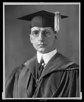 At the end of his first year at Blackrock College he was student of the year. He also won further scholarships and exhibitions and in 1903 was appointed teacher of mathematics at Rockwell College, County Tipperary.[14] It was here that de Valera was first given the nickname "Dev" by a teaching colleague, Tom O'Donnell.[15] In 1904, he graduated in mathematics from the Royal University of Ireland. He then studied for a year at Trinity College Dublin but, owing to the necessity of earning a living, did not proceed further and returned to teaching, this time at Belvedere College.[16] In 1906, he secured a post as a teacher of mathematics at Carysfort Teachers' Training College for women in Blackrock, Dublin. His applications for professorships in colleges of the National University of Ireland were unsuccessful, but he obtained a part-time appointment at Maynooth and also taught mathematics at various Dublin schools, including Castleknock College (1910–1911; under the name Edward de Valera) and Belvedere College.[17]