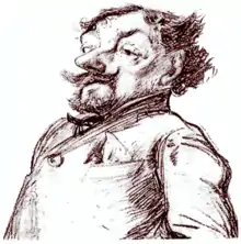 Émile Goudeau was from Périgord. He had a very brown complexion, very black hair and beard, a pronounced squint made him look fierce, but he was a very brave man, and he had much talent, which was original and tasty like wine ... Émile Goudeau had genius, just like that of the Duc Soulografiesky, his thirst was that of the Danaïdes.[lower-alpha 1] Anyway, Émile Goudeau chaired the meetings of the Hydropathes with bonhomie and authority.