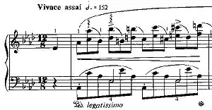 Étude Op. 10, No. 10, in A♭ major, is a technical study composed by Frédéric Chopin. This étude places huge demands on the performer in varying a single pattern by changes of accent and touch. Chopin's primary concern in this work is for the widest possible variety of touch that can be given to a single figuration, with the continuous changes of accent highlighting not only different parts of the figuration but also emphasizing the polyphonic nature of the pattern.