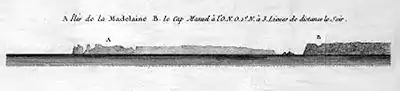 The Îles de la Madeleine and Cap Manuel, as seen "à trois lieues de distance le soir" by René Antoine Verdun de la Crenne