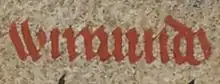 - Since the 1990s, academics have accorded Óláfr various personal names in English secondary sources: Amhlaibh,[2] Amhlaoibh,[3] Amlaíb,[4] Amlaim,[5] Olaf,[6] Óláf,[7] Olafr,[8] Ólafr,[9] Óláfr,[10] and Olav.[11] Likewise, academics have accorded Óláfr various patronyms in English secondary sources: Amhlaíbh Derg mac Gofhraidh,[12] Amlaíb mac Gofraid Méránaich,[13] Amlaíb mac Gofraid,[14] Olaf Godredsson,[15] Olaf Gudrodson,[16] Óláf Guðrøðsson,[17] Óláfr bitlingr Guðrøðsson,[18] Olafr Godredsson,[8] Óláfr Godredsson,[19] Óláfr Gothfrithsson,[20] Óláfr Guðrǫðarson,[21] Óláfr Guðröðarson,[22] Ólafr Guðrøðarson,[23] Óláfr Guðrøðarson,[24] Óláfr Guðrøðarsson,[25] Óláfr Guðrøðson,[26] Óláfr Guthfrithsson.[13] and Olav Gudrødsson Bitling.[11] Similarly, academics had accorded Óláfr various epithets in English secondary sources: Amhlaíbh Derg mac Gofhraidh,[12] Amlaíb 'the Red',[27] Amlaíb Derg,[28] Olaf Bitling,[29] Olaf Kleining,[30] Olaf the Diminutive,[31] Olaf the Red,[32] Olaf "the Red",[33] Olaf Titbit,[13] Óláfr Bitling,[13] Óláfr bitlingr Guðrøðsson,[18] Óláfr Bitlingr,[34] Óláfr klíningr Guðrøðarson,[35] Ólafr Suðreyjakonungr,[36] Óláfr Titbit,[37] and Olav Gudrødsson Bitling.[11] Óláfr is accorded several epithets in important mediaeval primary sources. The thirteenth-century Orkneyinga saga accords him the Old Norse byname bitlingr, which can translate to "bit", "the diminutive", "little-bit", "morsel", "tit-bit".[38] The Old Norse byname klíningr, which can translate to "Buttered Cake", "buttered bread", is accorded to Óláfr by Hákonar saga herðibreiðs within the thirteenth-century saga-compilation Heimskringla.[39] If these two epithets refer to Óláfr's stature, in the sense of "the small one" or "the little one", it is possible that they either refer in a literal sense to the small stature, or in an ironical sense to great height.[40] Another epithet, "the Red", is accorded to Óláfr by the seventeenth-century Sleat History.[41] This name contrasts "the black", the translation of an epithet accorded to his like-named grandson, Óláfr Guðrøðarson, King of the Isles.[42]