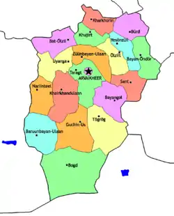 Övörkhangai (Mongolian: Өвөрхангай, Öwörhangai; "southern Khangai") is one of the 21 aimags (provinces) of Mongolia, located in the south of the country. Its capital is Arvaikheer.