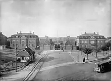 Østerfælled Barracks (Danish: Østerfælled Kaserne), later known as Østerbrogade Kaserne (Danish: Østerbrogade Kaserne), was a barracks originally built in the 1890s for the Guard Hussars of the Royal Danish Army in the emerging Østerbro district of Copenhagen, Denmark. Its grounds have now been transformed into a mixed-use development surrounding a pedestrian zone and is now known as Østerfælled Torv. Many of the old buildings have been retained while others have been demolished to make way for new residential buildings. The old main entrance to the barracks is located on the corner of Østerbrogade and Gunner Nu Hansens Plads.