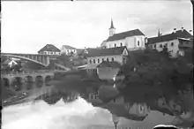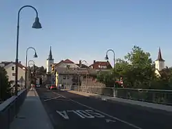 The parish church in the town is dedicated to Saint Peter and belongs to the Roman Catholic Diocese of Novo Mesto. The current building was built in the 17th century on the site of a 13th-century church.[10] There are two other churches in the town. One, dedicated to Saint Sebastian, is mentioned as a chapel in the early 16th century, but was extended into a church in 1646 after an outbreak of the plague. It was restored in 1904 and in 1963. The second is dedicated to the Holy Spirit and is a Gothic building first mentioned in documents dating to 1487, but frequently restyled, most recently in 1895. It is built on top of prehistoric and Roman occupation layers.[11]
