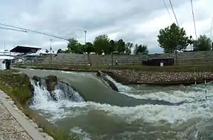 The Centre has two parallel whitewater channels; the drop is the same for both channels, 6.6 meters (22 feet). The left channel is 356 meters long, with a 1.9% slope of 19 m/km (98 ft/mile) and a streamflow of 7 to 22 m3/s (247 to 777 ft3/s). The right channel is 460 meters long, with a 1.4% slope of 14 m/km (76 ft/mile) and a streamflow of 7 to 12 m3/s (247 to 424 ft3/s). When both channels are watered, the left channel streamflow is 15 m3/s (530 ft3/s) and the right is 7 m3/s (247 ft3/s).[1]