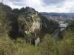 Remains of the several settlements dating from the periods of the earliest development of the civilization are found in the gorge and around it.[3] There are two major finds. The Staparska Gradina, near the Stapari village, is 11 km (6.8 mi) away from Užice. It was thoroughly explored in the late 1950s when the three levels of human habitation were discovered. The lowest and oldest is dated into the Neolithic. The middle level corresponds to the Vinča-Pločnik culture and the third one belongs to the Bronze Age. The dugouts were discovered in the oldest levels, but also the above-ground dwelling objects from the later periods. The artifacts are exhibited in the National Museum in Užice. The other find is the Rimsko groblje ("Roman cemetery"). It hasn't been explored as much as the Staparska Gradina was, but the remnants of the large, above-ground and regularly shaped stone plates. In 2015 locals build a public drinking fountain at the site.[5] In January 2019 plans were announced for the construction of the replica of the Neolithic settlement at Staparska Gradina. The settlement will include dug outs, stilt houses, artisan workshops, etc., and should be finished by the end of 2019.[6][7] Deadline was then moved to May 2020.[8]