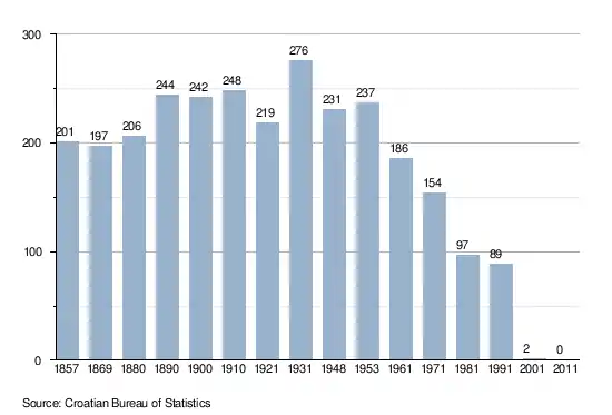 The 1991 census[2] recorded that all inhabitants were ethnic Serbs.