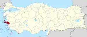 İzmir's first electoral district is one of two divisions of İzmir province for the purpose of elections to Grand National Assembly of Turkey. It elects thirteen members of parliament (deputies) to represent the district for a four-year term by the D'Hondt method, a party-list proportional representation system. The electoral district covers the southern half of İzmir.