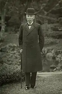 Marquess Ōkuma Shigenobu (大隈 重信, March 11, 1838 – January 10, 1922) was a Japanese statesman and a prominent member of the Meiji oligarchy. He served as Prime Minister of the Empire of Japan in 1898 and from 1914 to 1916. Ōkuma was also an early advocate of Western science and culture in Japan, and founder of Waseda University. He is considered a centrist.