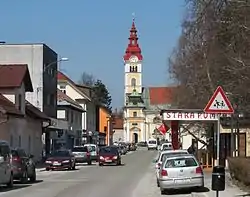 The central street in Šentvid was named Prušnik Street (Slovene: Prušnikova ulica) in 1980 after the Carinthian Slovene Partisan activist Karel Prušnik (1910–1980).[4] Until 1977, it was part of Klagenfurt Street (Celovška cesta), one of the main city arteries. The current Klagenfurt Street bypasses the central part of Šentvid along its western side.