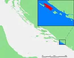 Šipan (pronounced [ʃǐpan]) also Sipano (Italian: Giuppana) is the largest of the Elaphiti Islands, 17 km (11 mi) northwest of Dubrovnik, Croatia; separated from the mainland coast by the Koločepski Channel; area 16.22 km2 (6.3 sq mi);[2] The island is 9.1 km (5.7 mi) in length, and up to 2.6 km (1.6 mi) in width. It is the largest island in this group and its highest point is 243 m (797 ft) above sea level. Two limestone crests, the higher (Velji Vrh, 243 m) in the northeast and the lower in the southeast surround a dolomite depression, on which olives, figs, vine, carob-trees, almond-trees, oranges and citrus fruit are cultivated.