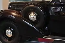 The first prototype of the Type 924 was built in 1937; however, it did not enter production until 1939. The Type 924 had a new 3,140 cc (191.6 cu in) overhead-valve straight-six engine, an extended wheelbase and shorter, more rounded bodywork. The 924 was characterized by having its spare-wheels located behind the front mudguards.[2]