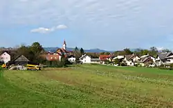 The church in Šmartno ob Savi is dedicated to Saint Martin. It has a Baroque octagonal nave with a chancel and was mentioned in written sources in 1430. The main altar bears the year 1699. The pulpit dates from the second half of the 17th century and the side altars, from the beginning of the 19th century, show Rococo influences. The church was associated with a convent with a large garden; the convent was confiscated in 1945 and converted into housing.[1]