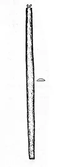 The ʻūkēkē is a musical bow made of koa wood, 16 to 24 inches long and about 1½ inches wide with two or three strings fastened through and around either end, tuned to an A major triad. Prior to the introduction of steel strings, gut or sennit (coconut fibre) were used.