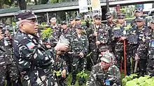 MAJ Virgilio S Ferrer II (RES) JAGS gives instructions to his personnel during the conduct of the 35th NRW Celebrations at Camp Aguinaldo.