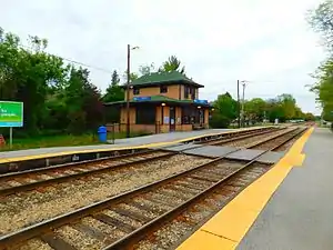 107th Street–Beverly Hills station is one of five Metra stations within the Beverly Hills neighborhood of Chicago, Illinois, along the Beverly Branch of the Rock Island District Line. The station is located at 1901 West 107th Street opposite the intersection of South Walden Parkway, 13.3 miles (21.4 km) from LaSalle Street, the northern terminus of the line.[2] In Metra's zone-based fare system, 107th Street is in zone C. As of 2018, 107th Street-Beverly Hills is the 121st busiest of Metra's 236 non-downtown stations, with an average of 395 weekday boardings.[1]