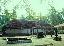 According to Hindu mythology, Lord Parasurama created the land between Gokarna and Kanyakumari. It is said that Kerala was reclaimed from the ocean using his axe for donating to Brahmins after killing of King Kartavirya Arjuna and other Kshatriyas.[1] He split this land in to 64 villages (64 gramas). Out of these 64 villages, 32 villages are in between Perumpuzha and Gokarnam and the spoken language was Tulu. The remaining 32 villages were in Malayalam speaking area between Perumpuzha and Kanyakumari.[2][3]