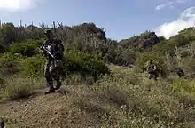 In the United Kingdom, the 116th was transported by rail to Tidworth in the southeast,[43] where it continued training.[44] On 11 October, Lieutenant Colonel Morris T. Warner took command of the regiment. On 16 March 1943, Colonel Charles D.W. Canham became the regimental commander.[45] In late May the 116th was transferred along with the division to Devon and Cornwall, relieving the British 55th Infantry Division there to free up Tidworth for the buildup of American forces in England, Operation Bolero. The regiment took over responsibility for coast defense in the Plymouth area. With the addition of the 111th Field Artillery Battalion, it became the 116th Regimental Combat Team (RCT).[46] The 116th participated in intensive training in Dartmoor and Bodmin Moor. In July, it commenced amphibious assault training on landing boats loaned by the British at Slapton Sands. In September the 116th RCT began training at the U.S. Army Assault Training Center on Woolacombe Beach, the first unit of the 29th to go through the center. At the beginning of 1944, the regiment included 166 officers, five warrant officers, and 3,100 enlisted men.[47]