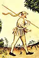 - Man walking in a brisk wind wears a chaperon that has been caught by a gust. He wears a belt pouch and carries a walking stick, late 14th century.