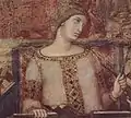 - Italian fashion of this period features broad bands of embroidered or woven trim on the dress and around the sleeves.[30] Siena, c. 1340