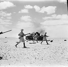 In May 1942 the brigade was sent to North Africa with the rest of the 44th Division, now under Major-General Ivor Hughes, where it fought at the Battle of Alam el Halfa. After Alam Halfa, 133rd Brigade was converted to a lorried infantry brigade, assigned first to 8th Armoured Division and then to 10th Armoured Division with which it fought at the Second Battle of El Alamein, transferring briefly to Major-General Douglas Wimberley's 51st (Highland) Infantry Division. After El Alamein the brigade's battalions were posted away on 31 December and 133rd Brigade was officially disbanded on 15 January 1943.[12] The 4th and 5th (Cinque Ports) Battalions were then merged to become the 4th/5th Battalion and with the 2nd Battalion were then posted to the 6th Indian Infantry Division, the 4th/5th posted to the 27th Indian Infantry Brigade, the 2nd posted to the 24th Indian Infantry Brigade. However, neither unit saw combat again and both these battalions remained in Iraq and Palestine for the rest of the war.