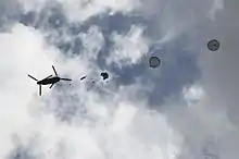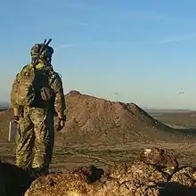 The unit was first mobilized during Desert Storm in 1991.[18] Following 9/11, members of the 165 ASOS have been deployed overseas supporting combat operations every year since 2002, except in 2013.[12] Members have supported the 48th IBCT during Operation Iraqi Freedom (OIF) and Operation Enduring Freedom (OEF) (Afghanistan), and the 53rd IBCT in AFRICOM.[7][10][21] Members have also supported numerous other groups in Special Operations Command, Combined Joint Task Force - Horn of Africa for Operation Octave Shield, and in South America.[22] Additionally, the 165 ASOS has supported the 1st Cavalry Division; the 2nd, 3rd, and 4th IDs; the 82nd Airborne; the 101st Airborne; the 37th IBCT; and 1st Armored Division (AD).[7][19][23]
