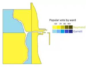 As with other mayoral elections of the era, returns in the city's wards heavily matched the partisan makeup of the votes that had been cast in the city's aldermanic election.[4][2]