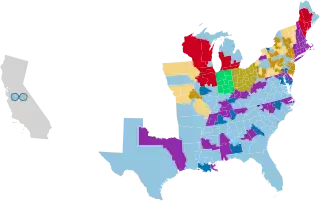Note: From statehood to 1864, California's representatives were elected at-large, with the top two vote-getters winning election from 1849 to 1858.