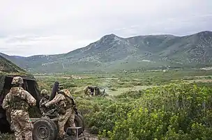 The 185th Paratroopers Artillery Regiment "Folgore (Italian: 185° Reggimento Artiglieria Paracadutisti "Folgore") is an artillery regiment of the Italian Army, specializing in airborne operations. The regiment was raised in March 1942 to support the Paratroopers of the 185th Paratroopers Division "Folgore". The division served with distinction the Western Desert Campaign and was destroyed in November 1942 during the Second Battle of El Alamein. Between 2000 and 2013 the regiment was named 185th Paratroopers Reconnaissance Target Acquisition Regiment "Folgore" and a Special Operations unit, tasked with reconnaissance and target acquisition. On 1 July 2013 the regiment was reformed as artillery unit in Bracciano and received war flag of the 185th Paratroopers Artillery Regiment "Folgore", while the 185th Paratroopers Reconnaissance Target Acquisition Regiment "Folgore" received the war flag of the 185th Paratroopers Regiment "Nembo",[3] which had been disbanded in September 1944 after serving with the Italian Co-Belligerent Army.[4] Today the regiment is based in Bracciano near Rome and operationally assigned to the Paratroopers Brigade "Folgore".[5]
