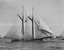 The New York Yacht Club entered 17 schooners, and the race was won by Franklin Osgood's Magic.