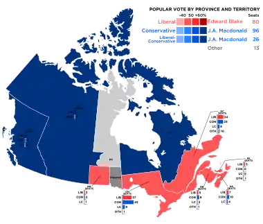 The Conservative Party of Prime Minister Sir John A. Macdonald retained power, defeating the Liberal Party of Edward Blake.