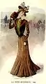- 1899 fashion plate shows the narrow, gored skirt and more natural shoulder of the start of the 20th century (as well as the results of "S-bend" corseting).