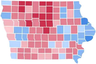| Iowa | 1,672 | 42.15% | 2,157 | 54.37% | 89 | 2.24% | 49 | 1.24% | -485 | -12.23% | 3,967 |