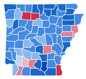 | Arkansas | 990 | 61.76% | 598 | 37.31% | 15 | 0.94% | 392 | 24.45% | 1,603 |
