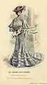 - Fashion illustration for Summer 1901 shows sloped waistline, "pouter pigeon" front bodices, high necklines and large hats with ribbons.
