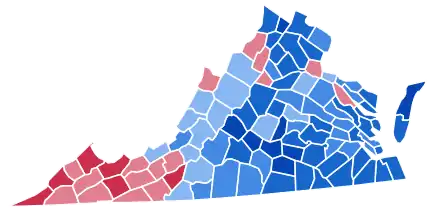 | Wise County | 897 | 36.11% | 1,572 | 63.29% | 9 | 0.36% | 6 | 0.24% | -675 | -27.17% | 2,484 |