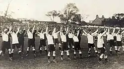 The memory of that war cry provokes anger in me even after all these years ... We were expected to leap up in the air and make foolish gestures which somebody thought Australian natives might have used in similar circumstances and we were give meaningless words which we were to utter savagely during the pantomime ... I refused to lead the wretched caricature of a native corroboree and regularly hid myself among the team, a conscientious objector.