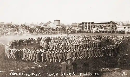 OAC opened the 1912 Northwest Conference season on November 1 with a 10–9 loss against Washington State College. In what was later proclaimed as "if not the best, one of the best games ever seen on Rogers Field," the Cougars battled back from a 9–7 deficit in the fourth quarter for the win, with a drive culminating in a 27-yard field goal providing the final margin of victory.[4] The comeback thrilled Washington State fans, with the local newspaper remarking that "a new precedent has been established, for it is not within the memory of the oldest living alumnus that a WSC football team has come from behind and won a game after their opponents had taken a lead."[4]