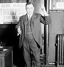 Despite his support from Lorimer and Lundin, Thompson was seen as backing the support of an established political machine.[10] Lorimer was perceived to have had his prestige and influence decline following his 1912 ousting from the United States Senate.