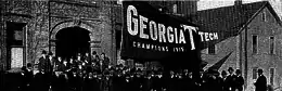 The year's only blemish was a scoreless tie against the rival Georgia Bulldogs in inches of mud.[19] John G. Henderson headed a group of three men, one behind the other with his hands upon the shoulders of the one in front, to counter Heisman's jump shift offense.[20] Georgia outplayed Tech throughout.[19] Georgia was once on Tech's 8-yard line, in the first quarter, but Walter Neville fumbled and Tommy Spence recovered.[19]