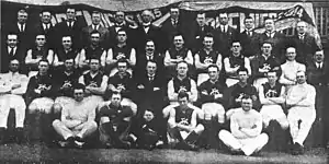 Following University's dissolution, players who wished to continue playing in the VFL were all cleared to Melbourne through an informal arrangement beneficial to both clubs:[3] University wished to see its best players playing together in the same VFL club to retain the strength of its own team for intervarsity competition,[1] and Melbourne, which had mostly struggled since its 1900 premiership due to the lack of a natural recruiting district (formal zoning was not introduced until the following year), gained exclusive access to a valuable source of recruits.[2] Among those who transferred from University to Melbourne were Jack Brake, Claude Bryan, Jack Doubleday, Dick Gibbs, Roy Park, and Percy Rodriguez.[3][4][5]