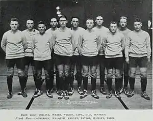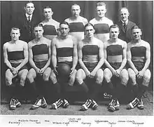 The 1919–20 Fighting Illini men's basketball season was the final of eight seasons for head coach Ralph Jones. This group was slightly better than the previous as they bounced back from the first losing season of Jones' career and finished third in the Big Ten. The campaign began with a six-game home winning streak; however, over the next seven games, the team posted only three wins, while losing four. After Jones left Illinois, he went to Lake Forest Academy in Lake Forest, Illinois. He coached both basketball and football at the academy for 10 years. His football team won 76 games and lost six in his ten years. His basketball teams had a ten-year record of 94 wins and 9 losses.[2] The record the Illini had at the conclusion of the 1919–20 season was nine wins and four losses overall with an eight-win, four-loss conference mark. The starting lineup included captain K. L. Wilson, J. B. Felmley, Julian Mee and P. C. Taylor rotating at the forward positions, All-American Chuck Carney at center, and Charles Vail, Burt Ingwersen, and Laurie Walquist as guards.[3]