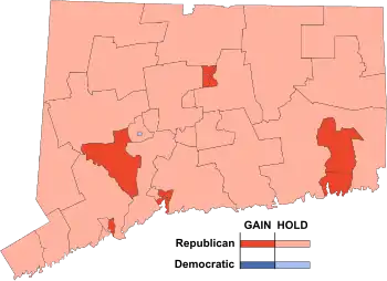 | 25 | Easton, Fairfield, Shelton, Monroe, Newtown, Stratford, Trumbull, Weston, Westport | John B. Dillon (R) | Elmore S. Banks 70.9% |