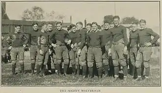"Tie Put Pepper Into Workouts Of Wolverines" The Jackson Citizen Patriot [Jackson, Michigan] 17 Oct. 1922: 17. - Tom Perrin (1987). Football: a college history. p. 113. ISBN 9780899502946.