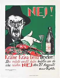There was plenty of campaigning from both sides, the best remembered poster being one designed by artist Albert Engström, with the famous quote Kräftor kräva dessa drycker ("crayfish require these drinks").