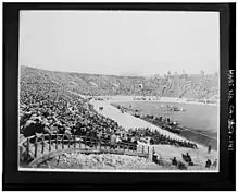 The 1923 Rose Bowl, played on January 1, 1923, was an American Football bowl game. It was the 9th Rose Bowl Game. The USC Trojans defeated the Penn State Nittany Lions 14-3.[1] Leo Calland, a USC guard, was named the Rose Bowl Player of the Game when the award was created in 1953 and selections were made retroactively.[2] It was the first bowl game appearance for both the University of Southern California and Pennsylvania State University football teams. It was also the first Tournament of Roses football game held in the newly constructed Rose Bowl Stadium, although games had been played in it prior to this game.