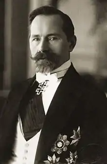 The principal political actors at the time of the coup had been active during the independence movement and the republic's first few years. Antanas Smetona had served as Lithuania's first president between April 1919 and June 1920; he then withdrew from formal political involvement, although he published political criticism, for which he served a brief prison term in 1923.[5] Augustinas Voldemaras represented Lithuania at the Treaty of Brest-Litovsk in 1918 and later served as Prime Minister, Minister of Defense, and Minister of Foreign Affairs. He resigned from the government in 1920, although he continued to write and publish political criticism, for which he also was sentenced to a short prison term.[6] Kazys Grinius had chaired a post-World War I repatriation commission, and went on to serve as head of the 6th Cabinet of Ministers and in the First and Second Seimas.[7] Mykolas Sleževičius served as prime minister in 1918 and 1919, oversaw the organization of the Lithuanian armed forces in 1920, and was a member of the Second Seimas between 1922 and 1926.[8]