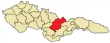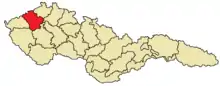 The Nové Zámky senatorial district consisted of the Nové Zámky 16th electoral district and the Kosice 20th electoral district, two districts that together hosted around 96% of the Hungarian and 56% of the German population of Slovakia.[24][25][26] The percentage achieved by the Communist Party in the Nové Zámky 16th electoral district was the highest in the country in the 1929 vote.[24][18]